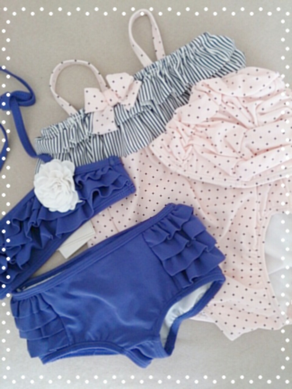 右のスイムウェアは昨年ハワイにて購入しました。