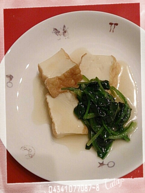 寒い日は。 温かい厚揚げが食べたくて。大好きな三越のお豆腐やさんの厚揚げで、娘と同じメニューで夕飯を作りました。娘の大好きなお出汁をたっぷり使い、娘にはサラダ用のほうれん草を。ママには少し生姜をきかせて、小松菜で。仕上げに黒七味を少し☆とても美味しそうに食べて(あと3つおかわりして)くれました。明日は何にしようかな?白菜と豚肉のミルフィーユ鍋にしようかな?