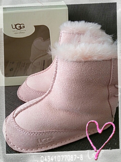 UGG☆ 先日購入した、娘のFirst UGG☆ママとお揃いのブラックのリボンも考えましたが、あちらはトドラーラインでまだ少し歩きにくそうだったのでベビーラインのものにしました。可愛らしいベビーピンク♪アウターにもよく合いそうです。既にムートンブーツ3足目・・・そろそろ控えないと!