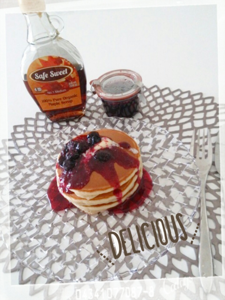 パンケーキ。 今朝は娘の大好きなパンケーキを焼きました。前夜に生地を用意しておくと、朝も便利ですし、ふっくら!娘にはオーガニックのメープルシロップを。パンケーキだよ、というと、パンと同じだねー、ケーキと違うよ、イチゴないよ、と言う娘。うーん、難しいね。見送って、家事を済ませたら、残った生地でママもブランチ♪週末のマルシェで買ったブルーベリーが少しあったのでさっとソースを作ってあわせました。ソースは余ってしまったので、ヨーグルトや炭酸割りにします。ほっと一息。さあ、午後も頑張りましょ。