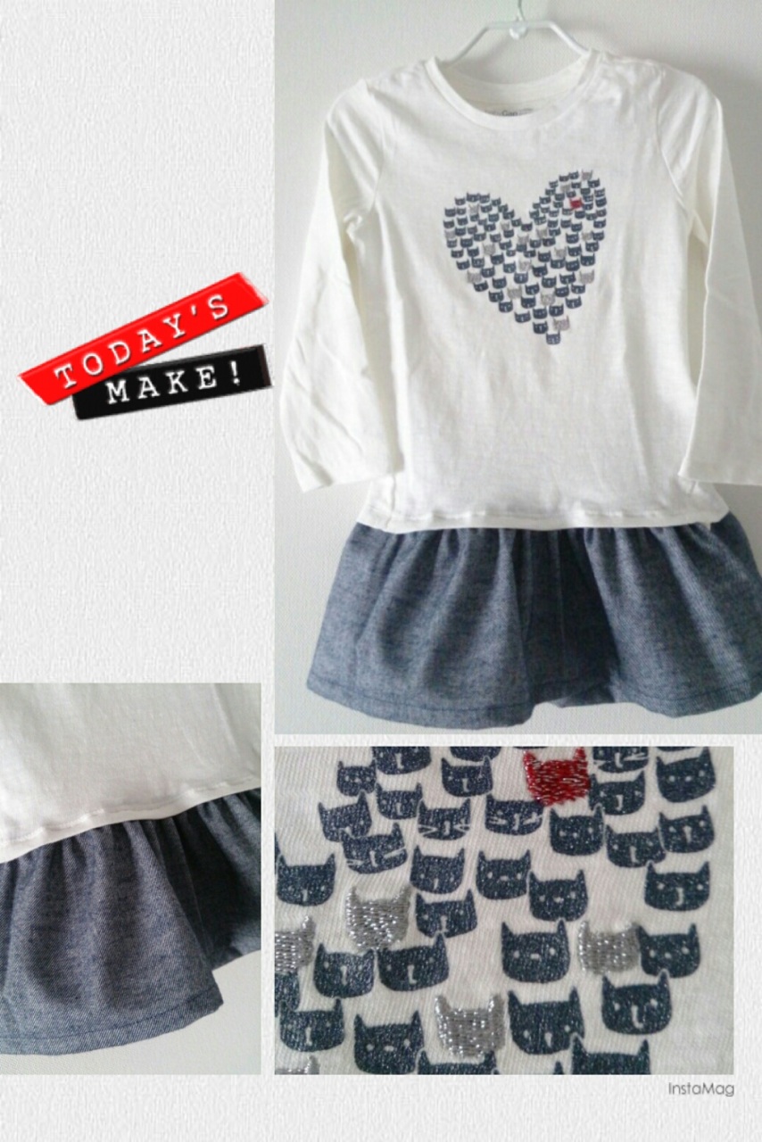 少しだけ。 先日、園用にと買ったねこさんカットソー。シルバーと赤のねこさんは刺繍になっていてとても可愛らしいのですが店舗には95サイズしかなくて、92センチの娘にはすぐに着丈が足りなくなりそうだったのでミニスカートをつけてあげました。かんたんソーイング、お昼寝の30分で仕上がりました。リバティ、無地、色々合わせてみて一番可愛らしかった生地で。気に入ってくれたら嬉しいです。さて、お昼寝の間に夕飯の支度もしてしまいます。生地 check&stripe 起毛ツイル ダークネイビー