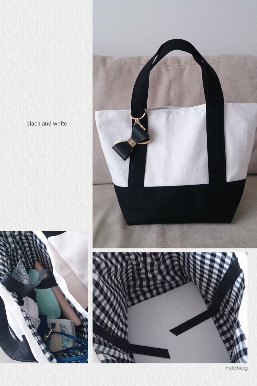 トート。 ひさしぶりにソーイング。お盆前に買っていた帆布で使いやすいサイズのトートを。撥水性のある帆布なのでオフホワイトでも気兼ねなく使えそう。むかーし、使っていたエルメスのボラボラ?のイメージで作りました。裏布にはblack&whiteのギンガム。グログランリボンに底板も入れて。ハンドメイドだと普通のトートも愛着がひとしお。たくさん使いたいと思います。