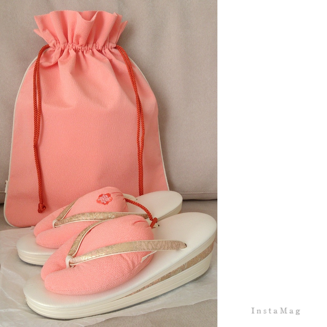 お草履小物。 お草履を持ち運ぶための巾着とキーパーをいただきました。綺麗な綺麗な、サーモンピンク♪結婚式で着たエリ松居のドレスにも良く似た大好きなお色味です。・・・とても可愛いのでお草履の数だけ欲しくなってしまいます(笑)