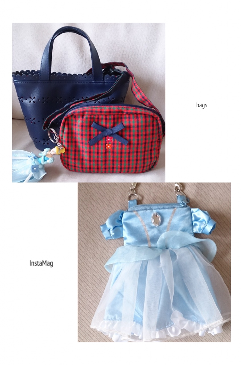 娘の愛用バッグ。 最近の娘はバッグが大好きです。私も好きだったようだし、今でもそうだから似たのかしら?というわけで、娘のバッグが増殖中です。最近買ったバッグたち。シンデレラが好きなのはずっと変わらないようです。(笑)そんなママとお姉ちゃんを見て育つぼくちゃんもやっぱりバッグ好きになってしまい。。。いつも娘のお下がりや気分でないものを拝借してはお気に入りのものを入れて持って歩いています。そんな姿が少し不憫なので、早く男の子らしいバッグを探してあげなくちゃ。